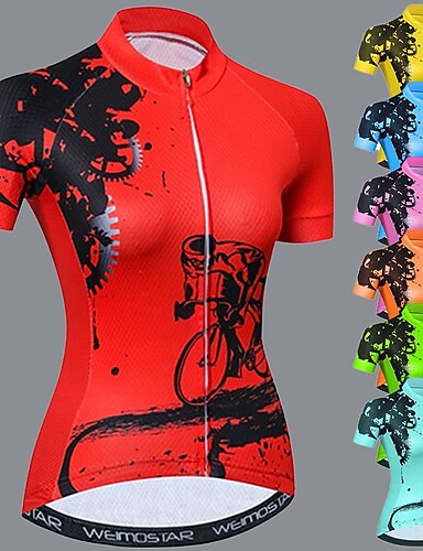 Femmes Maillot de cyclisme Graphique Manche Courte Cyclisme Maillot Top avec 3 poches arrière VTT Vélo tout terrain Cyclisme sur route Séchage Rapide Bandes réfléchissantes Poche Arrière Évacuation