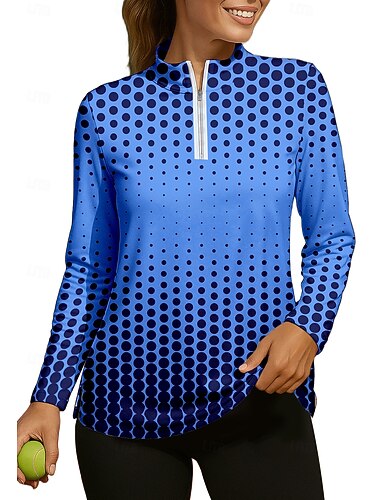 Femmes Géométrique Dégradé Pois Chemise T-shirt de sport T-shirt POLO Chemise de tennis manche longue Fermeture éclair Floral UPF50+ Résistant aux UV Haute élasticité Évacuation de l'Humidit