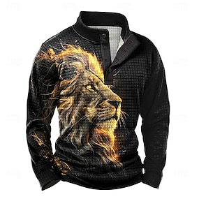 Homme Lion Gauffré Sweatshirt Quotidien Classique Occasionnel Col montant Extérieur Maison Travail Cadeau Noir Boutons Automne Hiver Designer S M L XL XXL XXXL