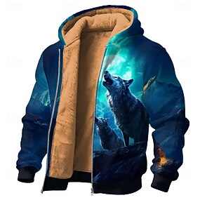 Homme Loup Polaire Sweat à capuche Veste Sweatshirt Classique Chasse manche longue Col ras du cou Extérieur Camping Bleu Zip Up Automne Hiver Designer S M L XL 2XL 3XL