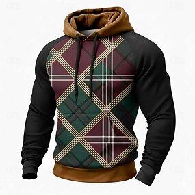 Homme Géométrique Plaid Sweat à capuche Sweatshirt Mode Quotidien Col ras du cou Maison Vêtements de rue Soirée Bleu Rouge Marron Vert Cordon de serrage Automne Hiver Designer S M L XL XXL XXL