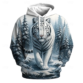 Homme Tigre 3D Sweatshirt Occasionnel manche longue Col ras du cou À capuche Bleu Col rond 3D Graphique Toutes saisons Designer S M L XL XXL XXL