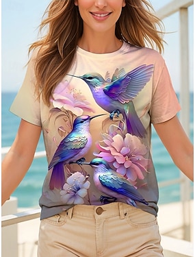 Femmes T-shirt Imprimé A Ombre Fleuri Graphique ancien Élégant Classique Manche Courte Col ras du cou Col rond Hauts Réguliers Quotidien Week-end Bleu Jaune Rose Claire Violet Vert Été Printemps