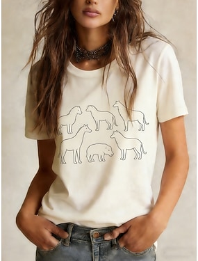 Femmes T-shirt Imprimé Graphique Animal Élégant Classique Occasionnel Manche Courte Col ras du cou Hauts Réguliers Quotidien Sports Sortir Blanche Été Printemps