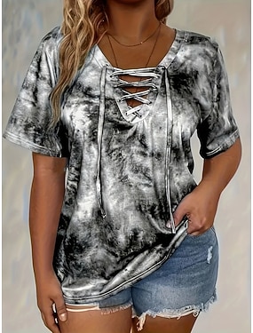 Femmes Chemise en coton Bloc de Couleur Mode Occasionnel Manche Courte Col ras du cou Col en V Hauts Réguliers Quotidien Gris Été