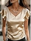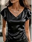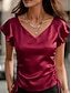 Femmes Haut en satin T-shirt Cordon de serrage A Volants Uni Élégant Mode Classique Manche Courte Col en V Hauts Réguliers Occasionnel Quotidien Sortir Noir Blanche Vin Abricot Été Printemps