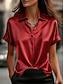 Femmes Chemise en satin Chemisier Couleur Unie Élégant Basique Occasionnel Manche Courte Col de chemise Hauts Réguliers Occasionnel Quotidien Bureau Bleu Noir Rouge Abricot Été Printemps