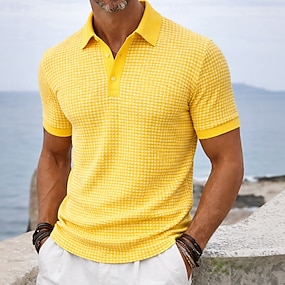 Homme Texturé Polo en Tricot Gaufré Occasionnel Vacances Col Rabattu Manche Courte Vacances Loisir Texturé Boutons Respirable Été Blanche Jaune Marron Vert Gris Texturé