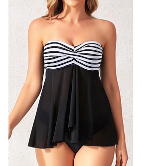 Maillot de bain femme tankini 2 pièces avec armature couleur bloc échancré contrôle du ventre taille haute mince dos nu vêtements de plage vacances floral rayé strapless sans manches