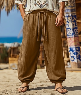 Homme Pantalons en Lin Pantalons Pantalon d'été Pantalons Amples Pantalons de Plage Cordon de serrage Taille Élastique Jambe Droite Uni Confort Respirant Longueur complète Occasionnel Quotidien