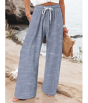 Femmes Jambe large Chinos Pantalons Amples Shorts de plage Vacances ancien Mode Longueur complète Taille haute Graphique Rayé Impression Micro-Élastique Occasionnel Quotidien Vacances Violet Rouge