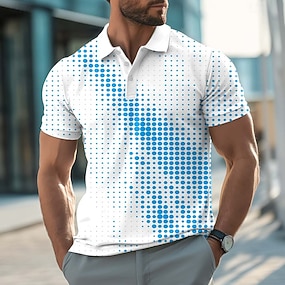 Homme Dégradé Géométrique Polo Manche Courte Polos Revers Occasionnel Athleisure Impression 3D Boutons Été Noir