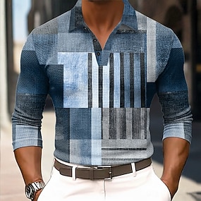 Homme Bloc de Couleur Géométrique Chemises Polo Gaufre manche longue Polos Chemises à Col Vêtement décontracté de travaile Affaires Tenue de travail Tenue quotidienne Impression 3D Boutons Printemps