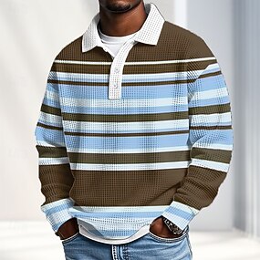 Homme Rayé Polo en maille torsadée Polos de Rugby manche longue Polos Chemises à Col Occasionnel Extérieur Athleisure Impression 3D Printemps Automne Bleu Clair Bleu Marron