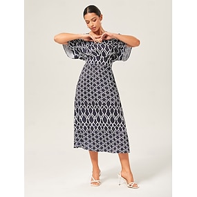 Femmes Féminin Robe Décontractée Robe Longue Maxi Robe Noir Manche Courte Géométrique Col en V Vacances XS S M