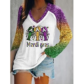 Mardi Gras Femmes T-shirt Imprimé Graphique Géométrique Dégradé Élégant Classique Occasionnel manche longue Col en V Hauts Réguliers Quotidien Sortir Week-end Jaune Violet Vert Été Printemps Automne
