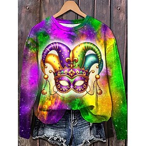 Sweat-shirt Femme Carnaval Graphique Mode Décontractée Manches Longues Col Rond Regular Tops Street Quotidien Impression Violette Verte Printemps Automne Hiver