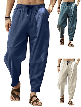 Homme Pantalons en Lin Pantalons Pantalons Amples Pantalons de Plage Cordon de serrage Avec Poches Pack multiple Uni Confort Respirant Longueur complète Quotidien Vacances Élégant Blanc + Noir + Kaki