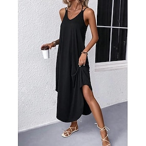 Femmes Robe maxi Robe noire Robe Décontractée Robe de Cocktail Robe de Cérémonie Streetwear Robe Maxi Occasionnel Vacances Rue Fête Coupe régulière Sans manches Bretelle Noir Vin bleu marine Vert