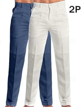 Homme Pantalons en Lin Pantalons Dress Pants works Pantalon d'été Pantalon plissé Avec Poches Jambe Droite Uni Confort Doux Formel Affaires Occasionnel Mode Classique Blanche bleu marine