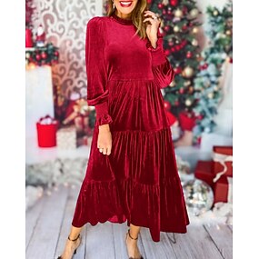 Femmes Robe Midi Robe de Noël Mode Moderne Extérieur Noël Sortir Coupe Ample Uni manche longue Col haut Noir Rouge bleu marine Violet Automne Hiver
