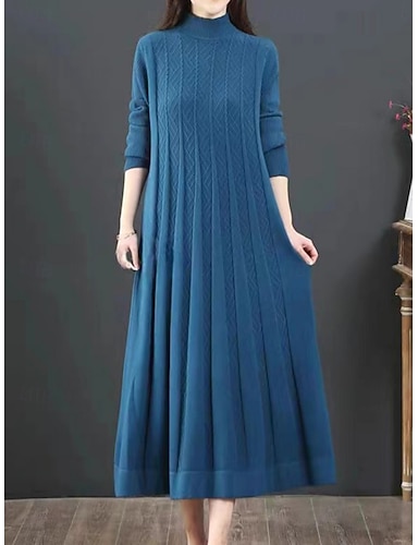Femmes Robe pull Élégant Occasionnel Doux Couleur Unie Côtelé Col roulé Tricoté manche longue Hauts Longs Tricoter Extérieur Quotidien Week-end Bleu Noir Automne Hiver