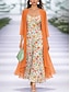Femmes Robe Ensemble Robe fourreau Robe d'été Occasionnel A Ombre Géométrique Superposé Imprimé Robe Midi Manche 3/4 Col ras du cou Quotidien Blanche Jaune Orange Printemps Automne Coupe régulière