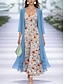 Ensemble de Robe Femme Robe Maxi Robe A Ligne Robe d'Été Vacances Boho Impression Florale Ombre Manches 3/4 Col Rond Quotidien Extérieur Ajustement Lâche Bleu Été Printemps