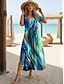 Femmes Robe Midi Robe trapèze Vacances Occasionnel Boho Soirée Coupe régulière A Ombre Fleuri Graphique Manche 3/4 Col en V Bleu Orange Été Printemps Automne
