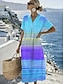 Femmes Robe maxi Robe d'Été Robe T-Shirt Robe trapèze Vacances Occasionnel Plage Sortir Coupe régulière A Ombre Graphique Abstrait Manche Courte Col en V Bleu Jaune Orange Été Printemps