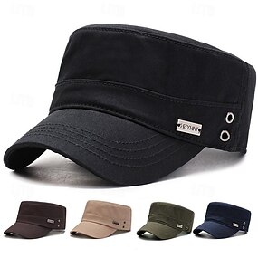 Homme Casquette Plate Casquette militaire Chapeau de cadet Noir Bleu foncé Coton Voyage Plage Extérieur Vacances Plein Ajustable