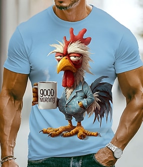 Homme Animal Coq Drôle Grincheux T-shirt Manche Courte T-shirt Impression 3D Col ras du cou Chemise Exagéré Designer Soirée Fête Bleu Bleu lagune Vert Été Printemps Vêtement Tenue S M L XL XXL XXXL