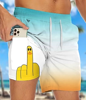 Homme Drôle Dégradé de Couleur Canard Short doublé Short de bain 2 en 1 Shorts de bain Taille Moyenne Hawaïen Fête Poches Latérales Avec doublure de compression Taille élastique avec cordon de serrage