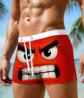 Homme Dessin animé Gros yeux Fausse fermeture éclair Boxers extensibles Caleçons de Bain Shorts de bain boxeur Drôle Occasionnel Maison Vacances à la Plage Ceinture Élastique Évacuation de l'humidit