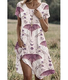 Femmes Robe Midi Robe T-Shirt Robe trapèze Robe d'été Vacances Occasionnel Plage Coupe Ample Fleuri Graphique Manche Courte Col ras du cou Noir Violet Orange Vert Été Printemps