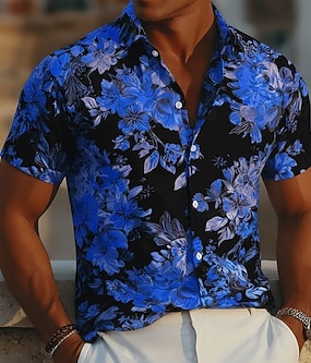 Homme Imprimé Floral Fleurs tropicales Chemise hawaïenne Chemise Boutonnée Chemise Aloha Manche Courte Hawaïen Vacances Fête Tenue de plage Été Printemps Col Rabattu Impression 3D Chemise en lin Bleu