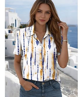 Chemise pour femmes à manches courtes chemisier boutonné graphique géométrique décontracté quotidien col régulier hauts quotidiens blancs été printemps