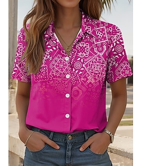 Chemisier Femme Manches Longues Blouse Boutonnée Graphique Géométrique Dégradé de Couleur Vintage Tropical Quotidien Chemisier à Manches Courtes Col Regular Tops Quotidien Rose Bleu Vert Été Printemps
