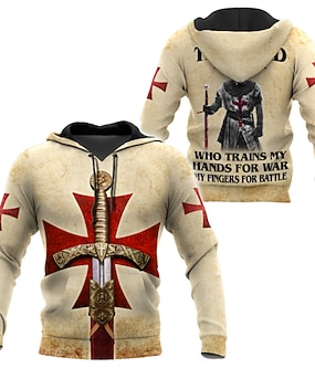 Homme Chevaliers Templiers Impressions Graphiques Croix Sweat à capuche Sweats à capuche Sweatshirt Streetwear Designer Occasionnel Grand et Long manche longue À capuche Quotidien Sports Kaki Imprimé