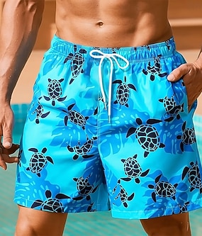 Homme Animal Tortue de mer Maillots de bain Shorts de bain Shorts de Surf Taille Moyenne Hawaïen Vacances à la Plage Poches Latérales doublure en maille Taille élastique avec cordon de serrage