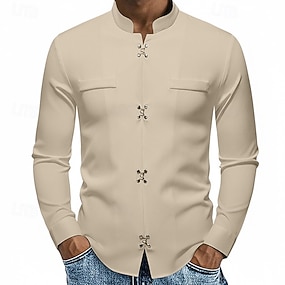 Homme Chemise Chemise Décontractée Chemise à col officier Chemise Boutonnée Blanche Kaki manche longue Uni Col mandarin Vacances Soirée Vêtement Tenue Élasthanne Polyester Mode Occasionnel