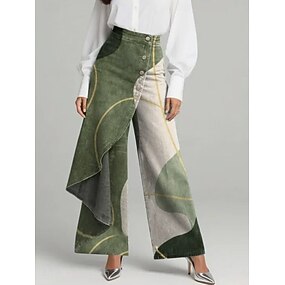 Femmes Jambe large Vacances Basique Longueur complète Taille Moyenne Non Elastique Vacances Rue Décontracté Bleu Vert foncé Bleu lagune Noir Printemps Coupe Ample