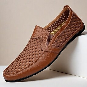 Homme Mocassins et Slip On Chaussures faites à la main Marche Décontractées Extérieur Athlétique Maille Cuir Respirable Fait à la main Noir Bleu Marron Eté Printemps