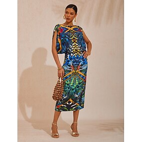 Femmes Féminin Robe Décontractée Bleu Sans manches Géométrique Été Inter-saisons Col rond Vacances Contemporain S M L