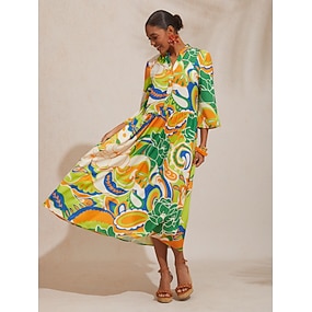 Femmes Robe Imprimée Jaune Été Élégant Vacances S M L
