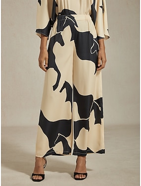 pantalon large en satin soyeux à motif papillon de la jungle