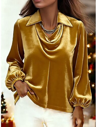 Nouvel An Femmes Velours Chemise habillée Chemise Boutonnée Chemisier en velours Paillettes ancien Mode manche longue Col Rabattu Hauts Réguliers Quotidien robe demoiselle d honneur Tenue de soirée