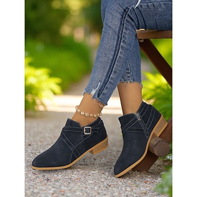 bottines décontractées en faux daim pour femmes avec fermeture éclair latérale et talons bas - bottines vintage confortables à porter au quotidien