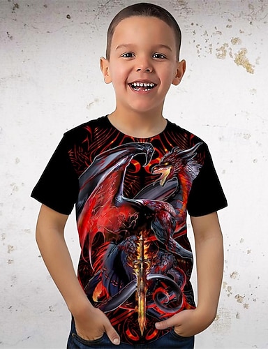 T-shirt Dragonblade Widowblade par Ruth Thompson pour garçon, motif dragon 3D, manches courtes, mode été printemps, basique, pour enfants de 4 à 12 ans, col ras du cou, pour l'extérieur, décontracté, quotidien, coupe classique
