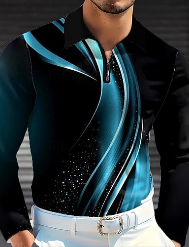 Homme Géométrique Ligne Polo manche longue Polos Chemises à Col Vêtement décontracté de travaile Affaires Athleisure Tenue quotidienne Impression 3D Boutons Printemps Automne Hiver Bleu Clair Bleu